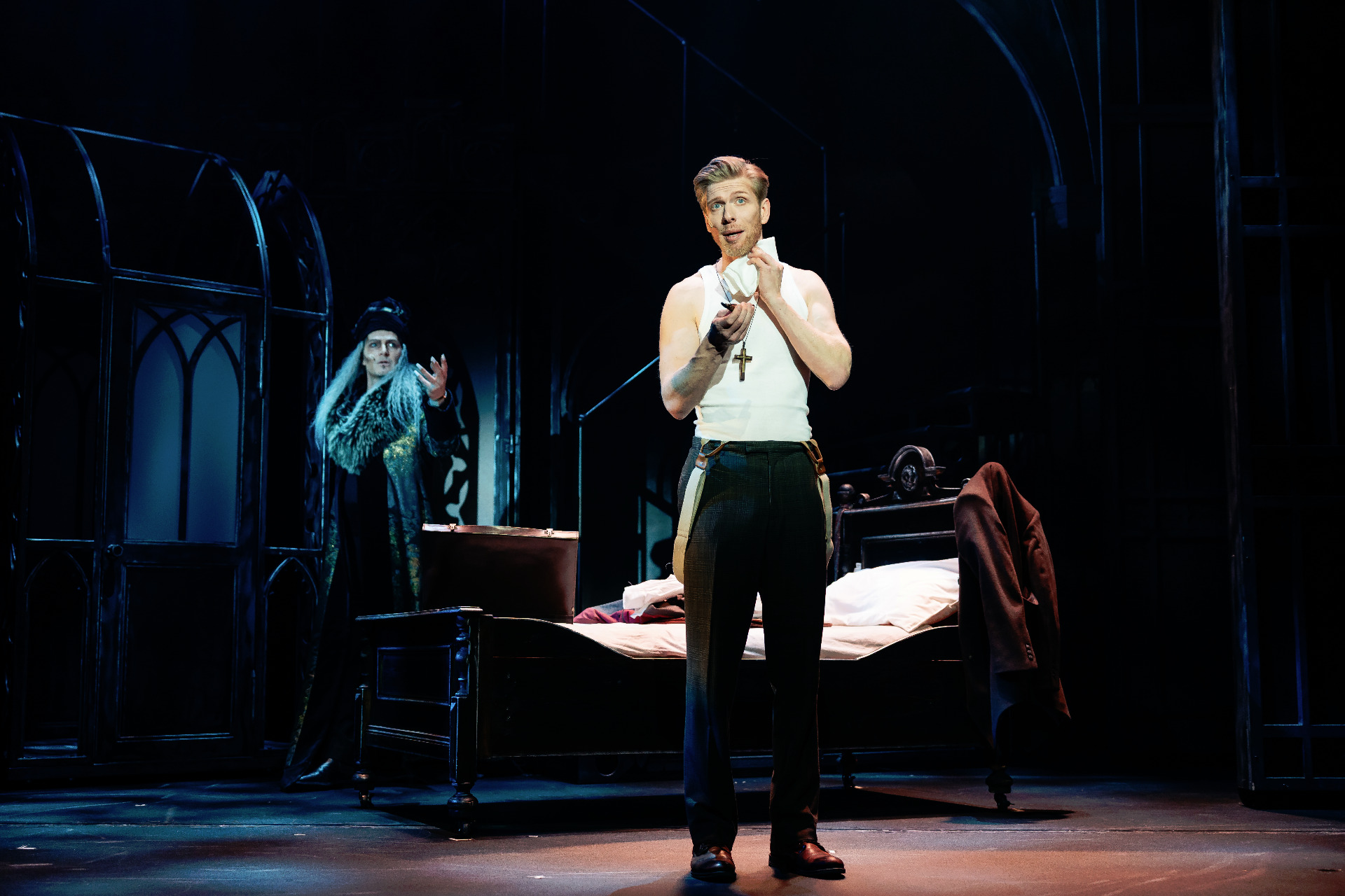ShowSlot bietet hier ein romantisches und zugleich schaurig-düsteres Musical des bekannten Klassikers Dracula, das seines Gleichen sucht. Auch große Namen der Musical-Szene wie Jan Ammann als Dracula und Navina Heyne als Mina waren als Künstler gebucht. Das Gesamtensemble war fantastisch zusammen gesetzt, spielte mit Herzblut und hamonierte hervorragend. Sowohl schauspielerisch als auch gesanglich und auch von der Geschwindigkeit her ein Genuss. So manches Mal änderte sich alle 2-3 Minuten das Geschehen, aber die Schauspieler spielten auch schnelle Wechsel mit Bravour.