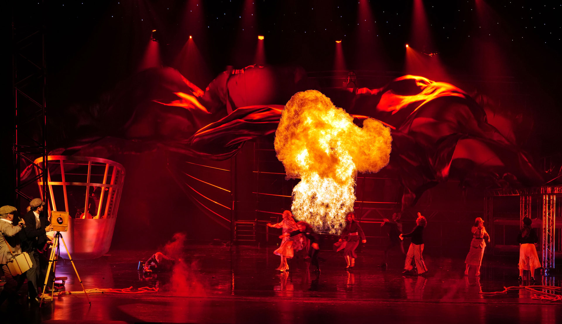 zum Leben erweckt. Teilweise erscheint einem die ein oder andere Bühnenszene als Illusion, doch beim genaueren Hinsehen stellte man fest, dass alles "echt" war. In dem Musical wurde insbesondere auf die Entstehung des Luftschiffbaus Bezug genommen; nicht gespaart wurde jedoch auch an einem Hinweis auf den durch die deutschen Luftschiffe verursachten Bombenterror in den Weltkriegen.
